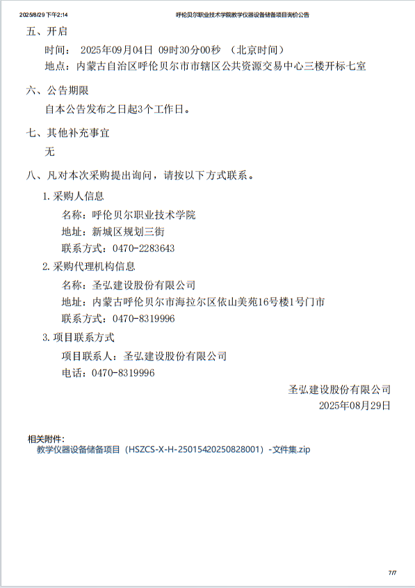 呼伦贝尔职业技术学院教学仪器设备储备项目询价公告